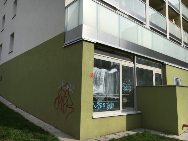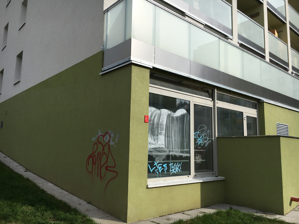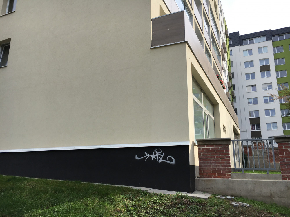 Graffiti na nově zrekonstruovaných panelácích -nafoceno podél cesty vnitroblokem od ul. Blahoslavova do ul. Ostromečská