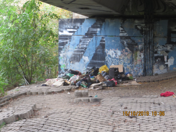 Prosím vás moc úklid tohoto místa co nejdřív , a lépe zabezpečit v podmostí bud nějakým oplocení nebo jinými ochranými prvky a by se tu sqautovalo .