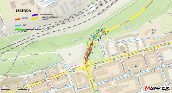 V podmostí pod Ohradou směrem do Libně kde jezdí tramvaje, je velká rozsahla černá skládka kde tu pod mostem žijí bezdomovci , vaří si tu obědy apod... Tramvaje tudy musejí touto oblasti v podmostí jezdit pomalu aby nikoho z bezdomovců a cestující v tramvají neohrozily. Součásti je černé skládky jsou několik injekčních stříkaček, mrtví pes již v rozkladu v řádu měsíců, pet láhve všude podél tratě , plná hromada rozbitých tvárnic v podmostí ale na chodníčku směrem ke křižovatce výše zakresleno.