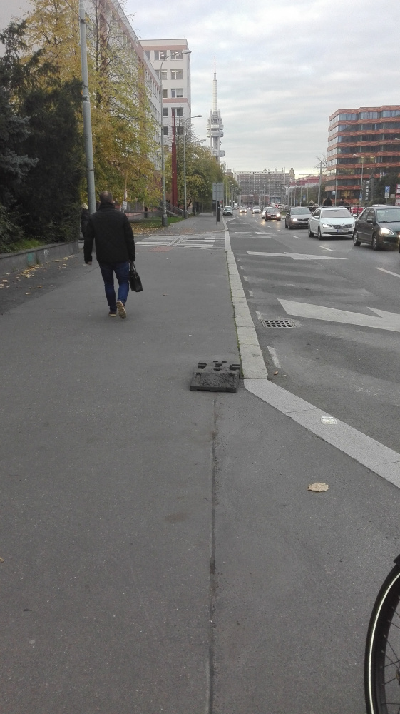 Podstavec dopravní značky na chodniku Olšanská 3,Praha 3