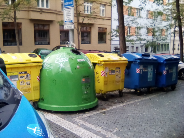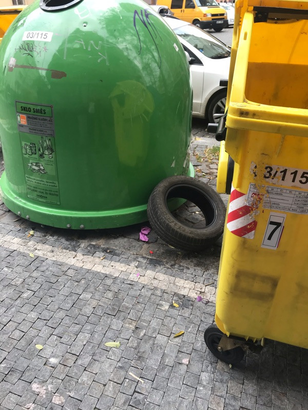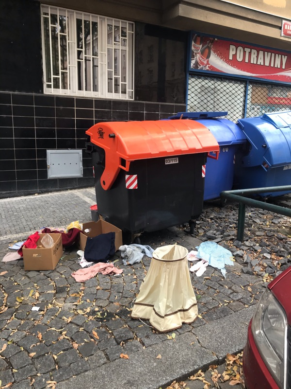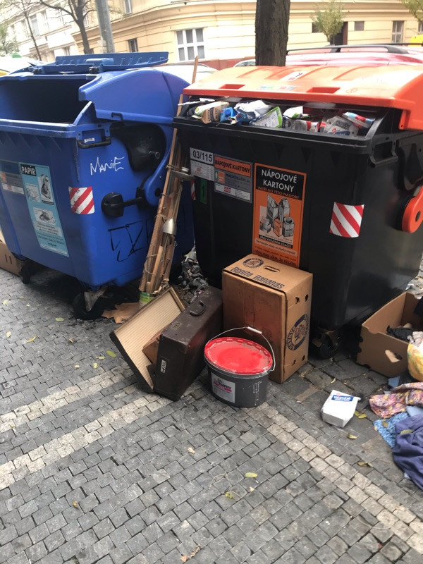 Opět černá skládka kolem tříděného odpadu roh Baranova Přemyslovská Praha 3
