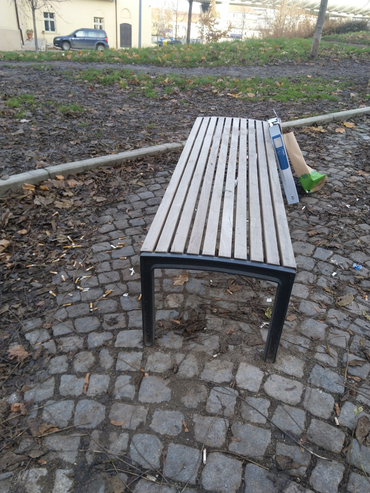Nepořádek kolem laviček.