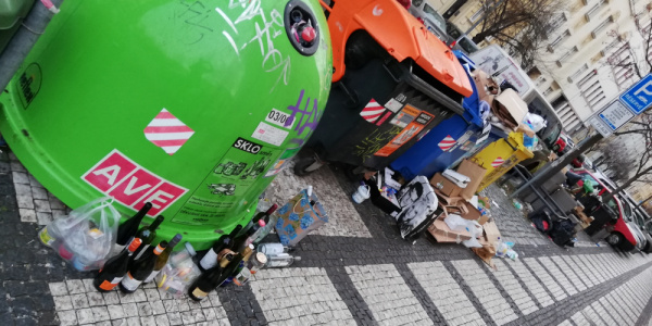 Odpadky kolem kontejnerů a v ulici Přemyslovská