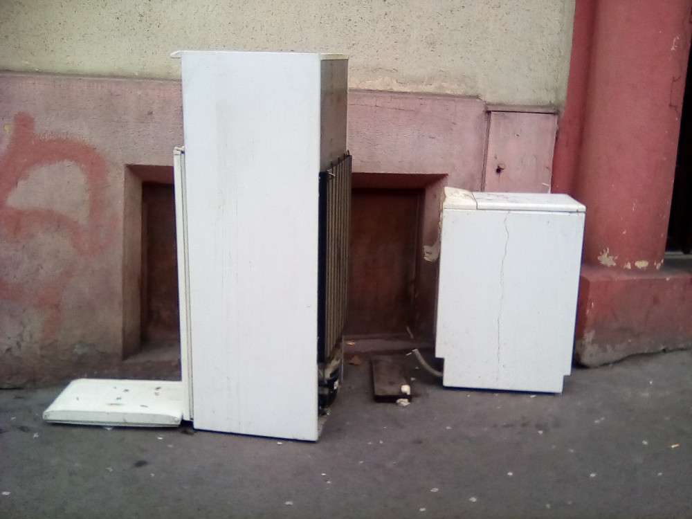 Staré lednice na chodníku naproti hotelu Don Giovanni, již 10dní
