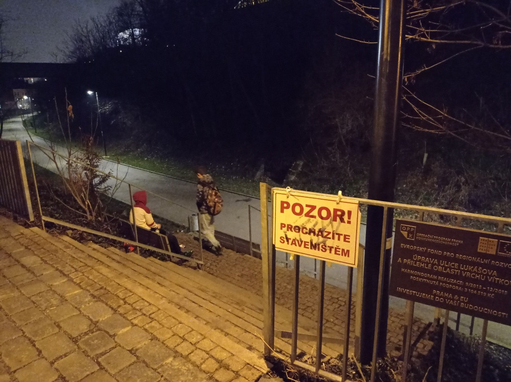 Nad cyklostezkou na konci ulice Lukášova se nachází zapomenutá cedule "pozor procházíte stavbou," která je zde od doby rekonstrukce cyklostezky. Prosím o její odstranění.