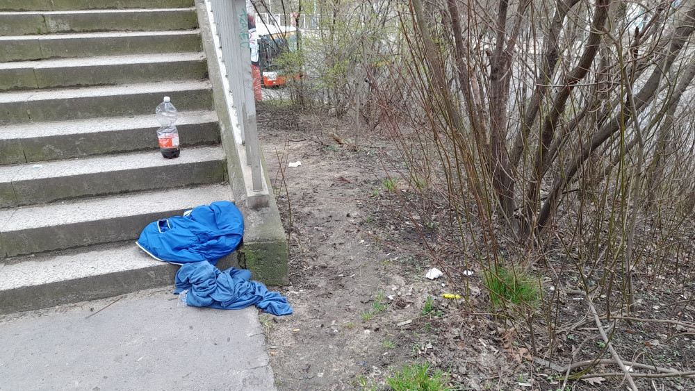 Ohrada - nepořádek po bezdomovci i jeho exkrement