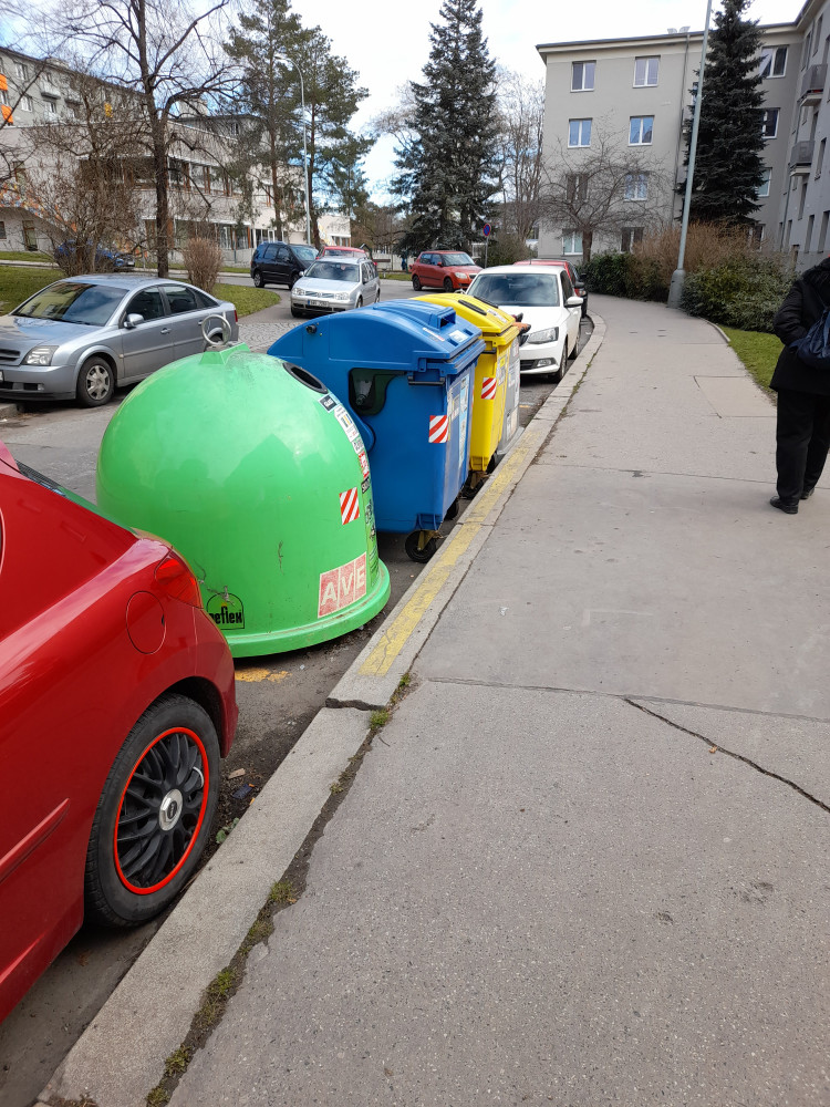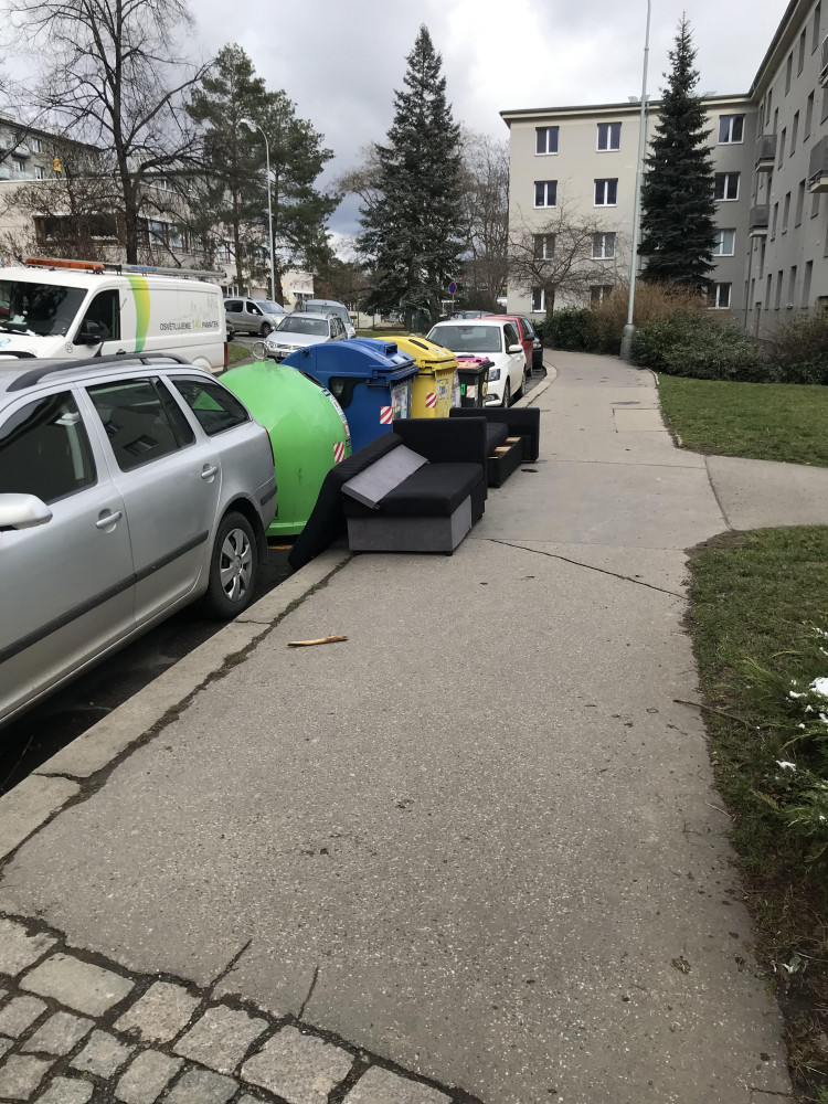 Někdo se zbavil části sedačky, ložil ji vedle nádob na tříděný odpad.