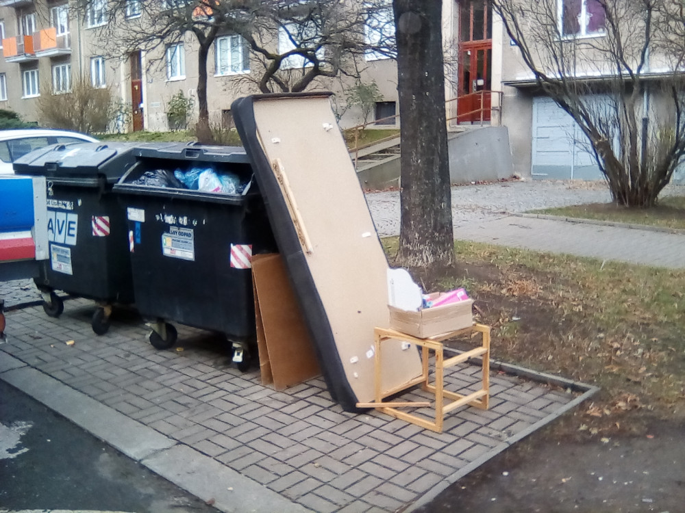 Kusy nábytku nu popelnic.