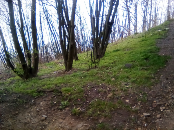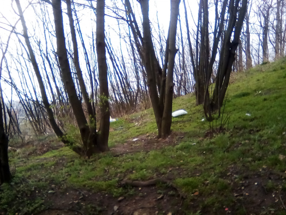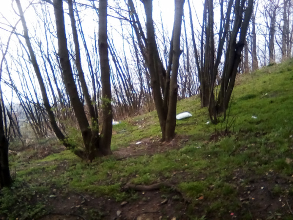 Nepořádek ve svahu za toaletami dopravního podniku. Na Ohradě.