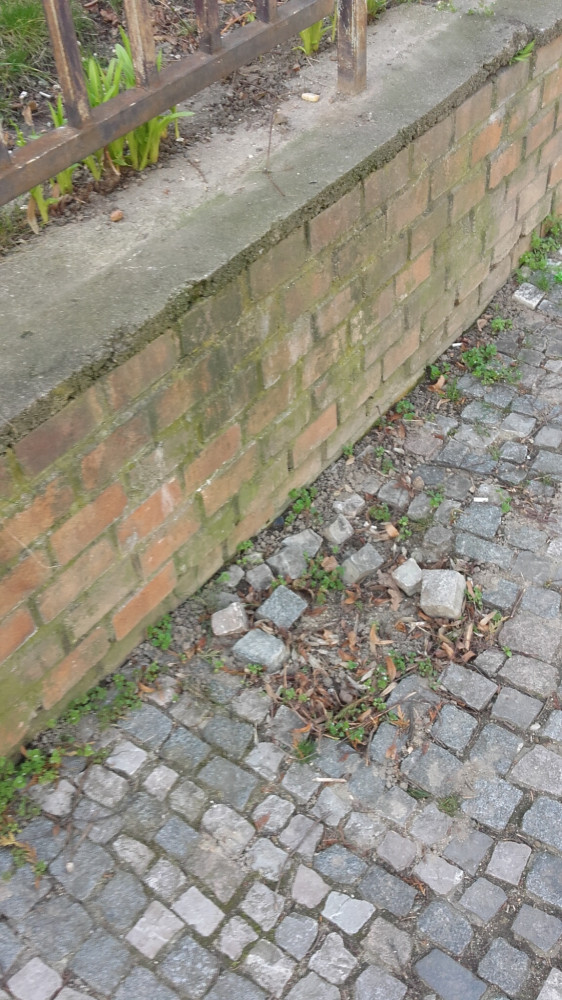 Rozpadlá dlažba (z malých kostek) na několika místech chodníku v ulici U kněžské louky v úseku od ulice Spojovací k ulici Nad lukami pop pravé straně. Jde o asi 5 oblastí velikosti cca 30x30 cm až 1x1 m.