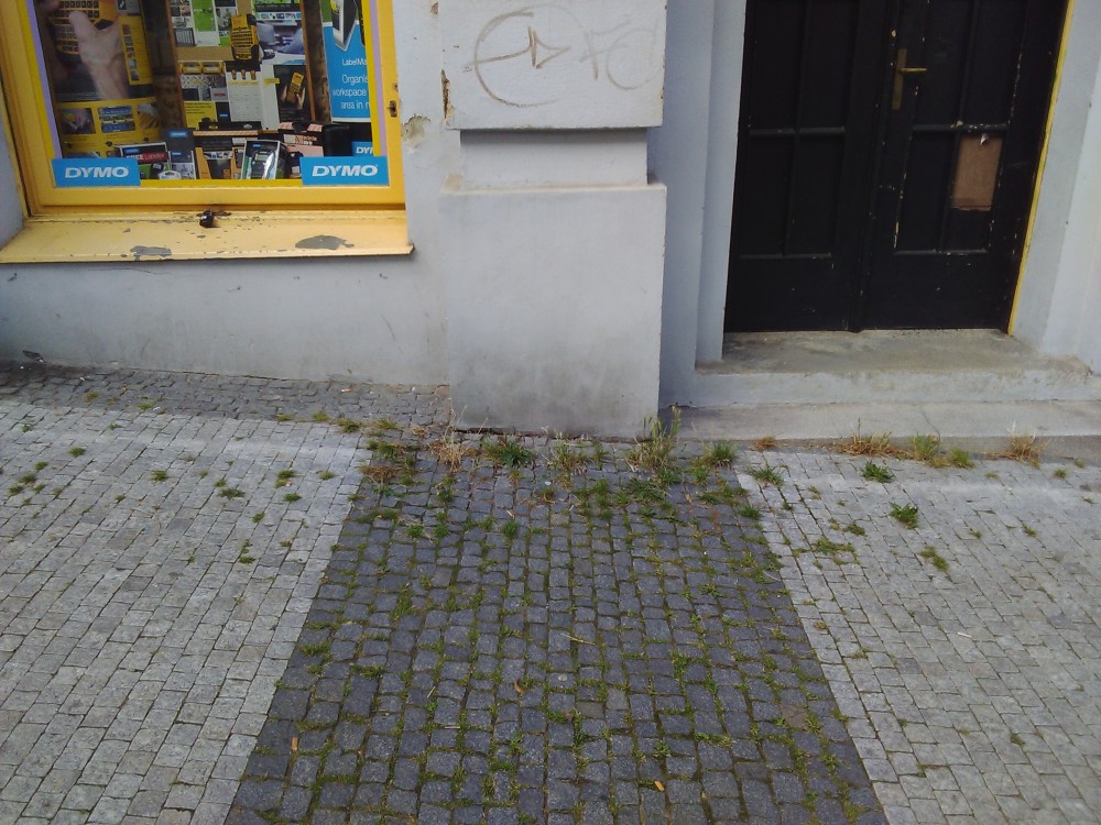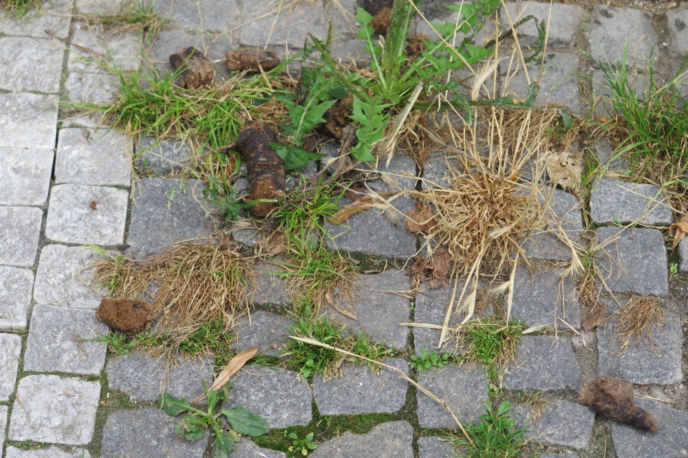 Nejenom ten exkrement, ale ani ta tráva by tady neměla být.