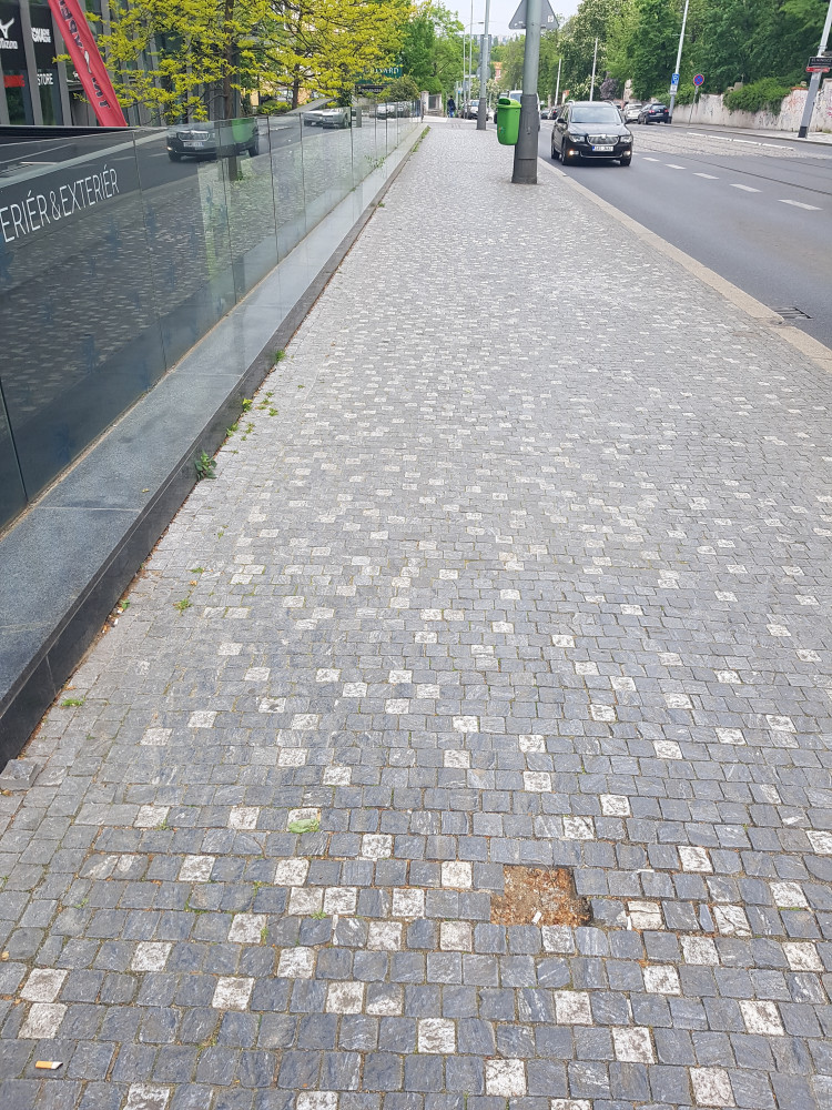 Chybějící kostky na chodníku.... Více míst...