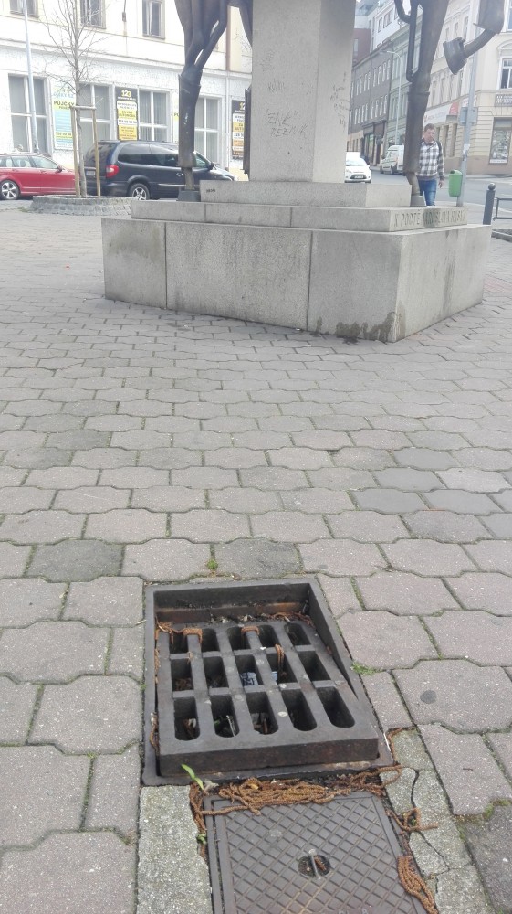 Na Prokopove namesti je castecnevypadle viko od kanalu. Hrozi uraz.