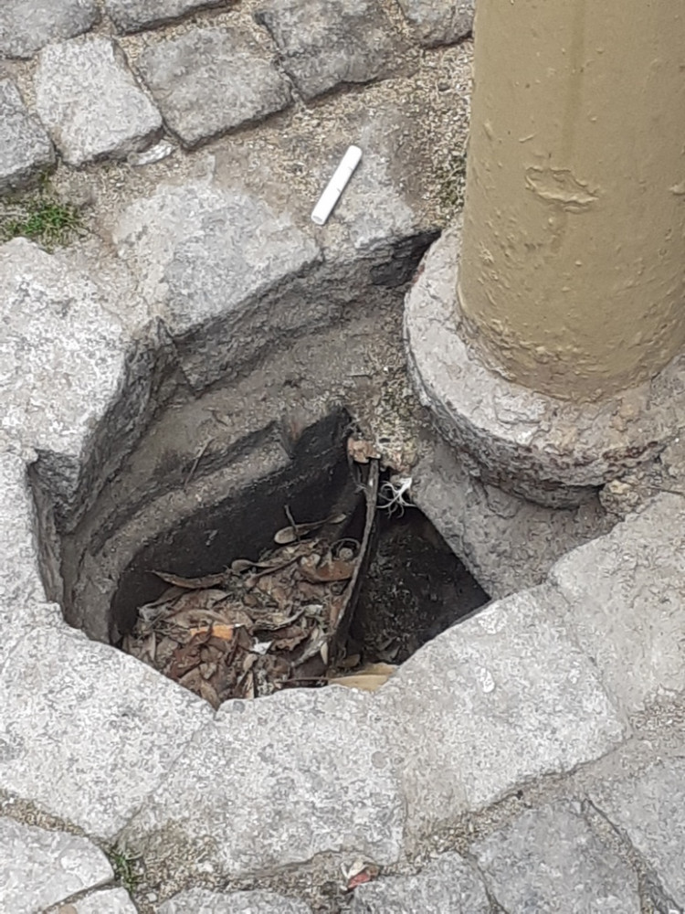 Chybí ochranné víčko okapu... Zanáší se odtok...