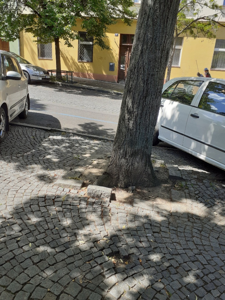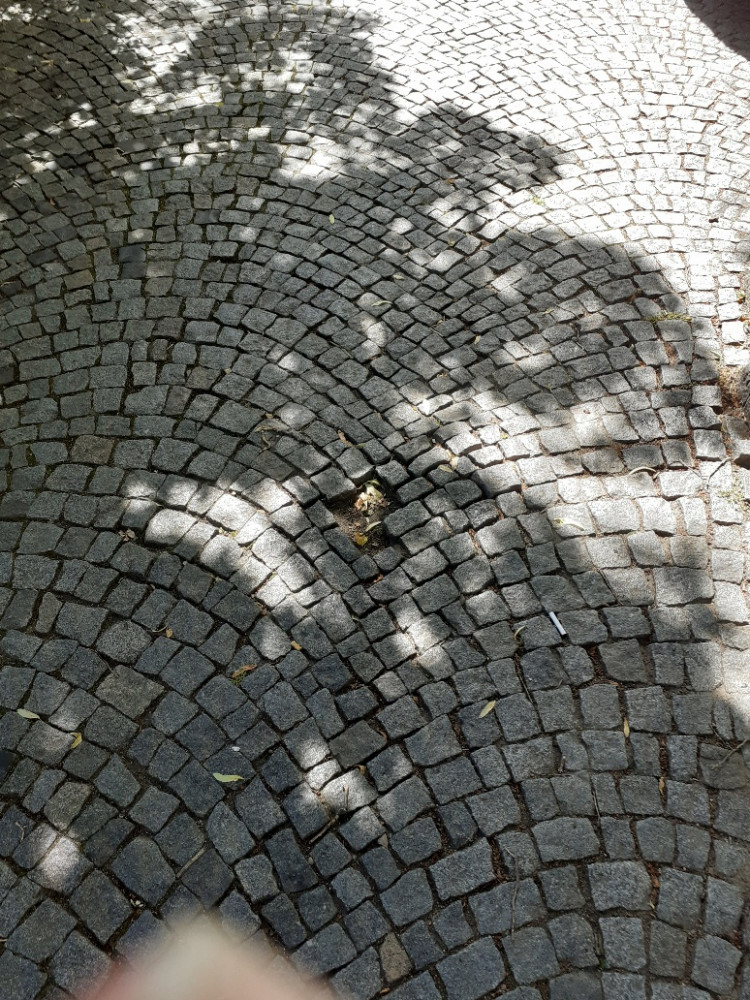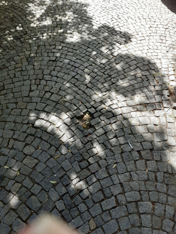 Rozebraná mozaika, chybějící kostky, naproti č.o. 26 -u parku
