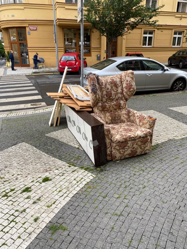Objemný odpad na chodníku (kreslo, skrin, ...)
