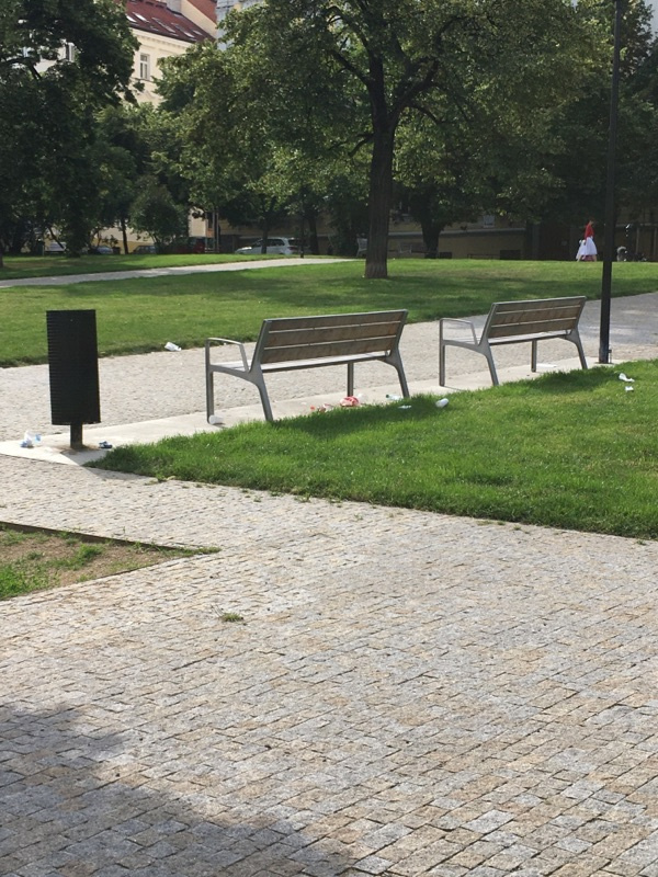 Nám. Barikád - opět v otřesném stavu po nočním dýchánku. Neuvažuje se o kamerách?