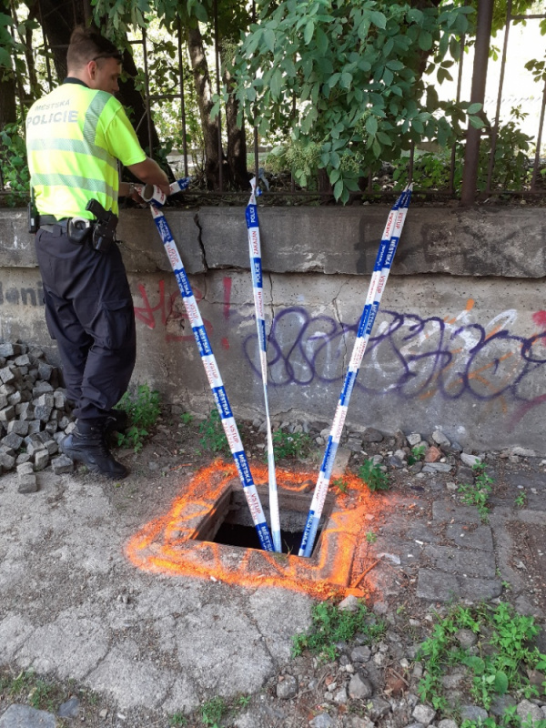 Ve spolupráci s Městskou policií bylo místo do opravy provizorně zabezpečeno...
