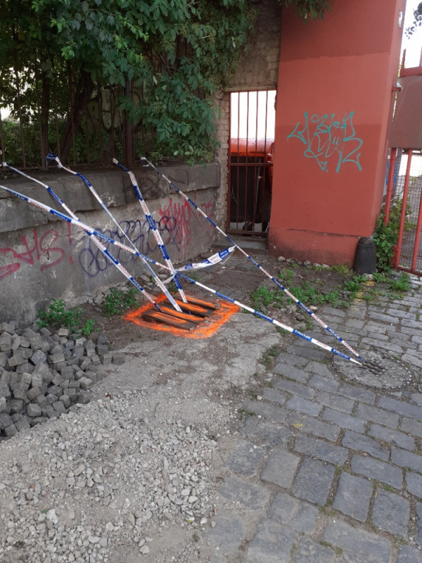 Díra, chybějící poklop, nebezpečí úrazu či havárie !