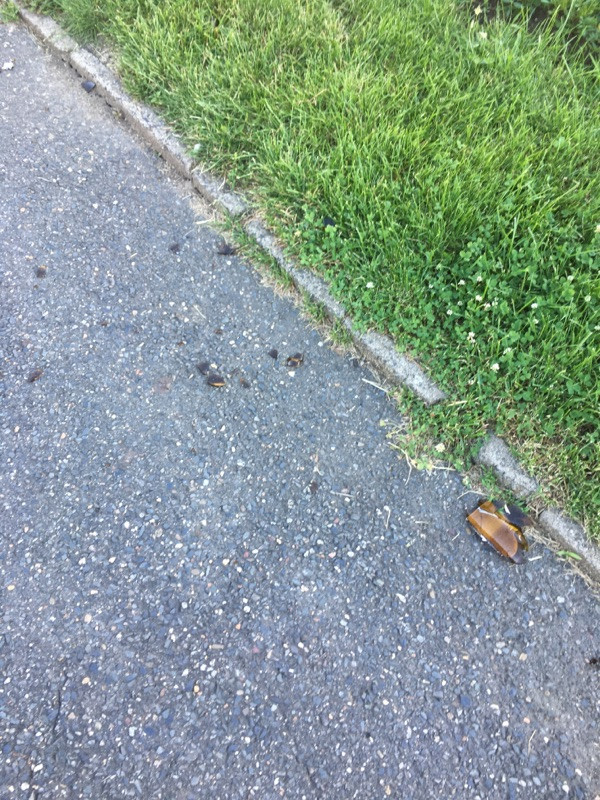 Střepy na cestičce leží už 2. den bez povšimnutí, nikdo tu neuklízí. Prosím tedy vás.