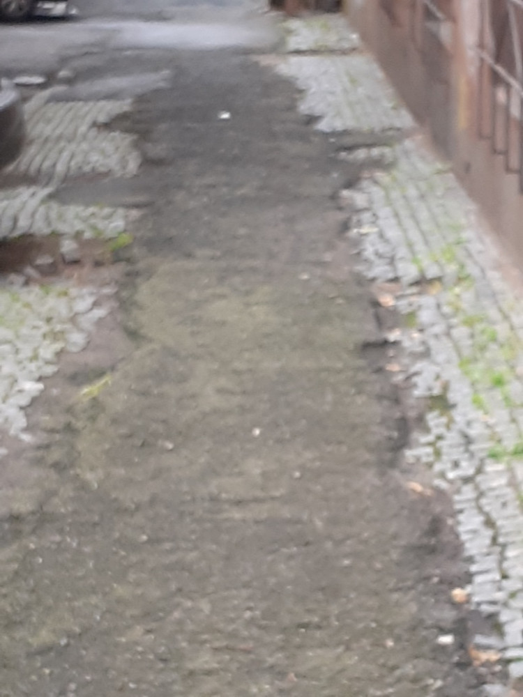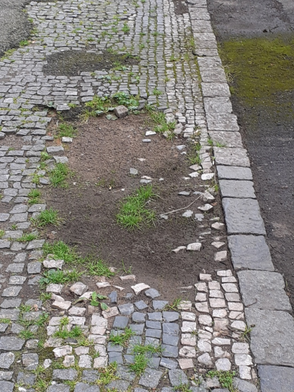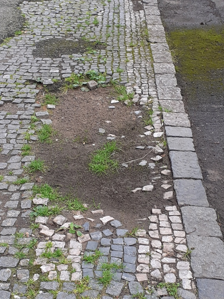 Výtluky, díry, -stav chodníku na zlomení nohy.