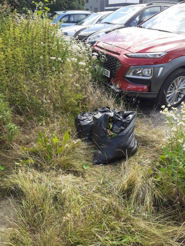 2 pytle s hnijícím odpadem. Roh Malešické a Za Vackovem u parkoviště...