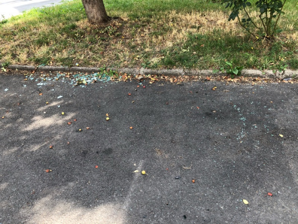 po vykradeni auta ostalo na parkovisti pod stromem sklo.