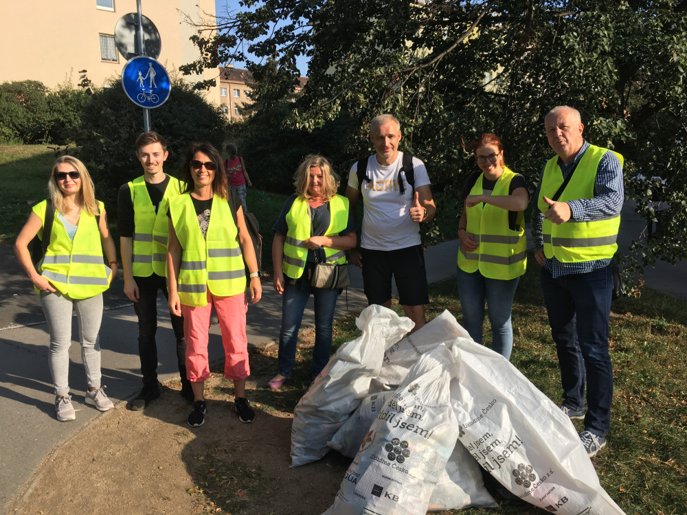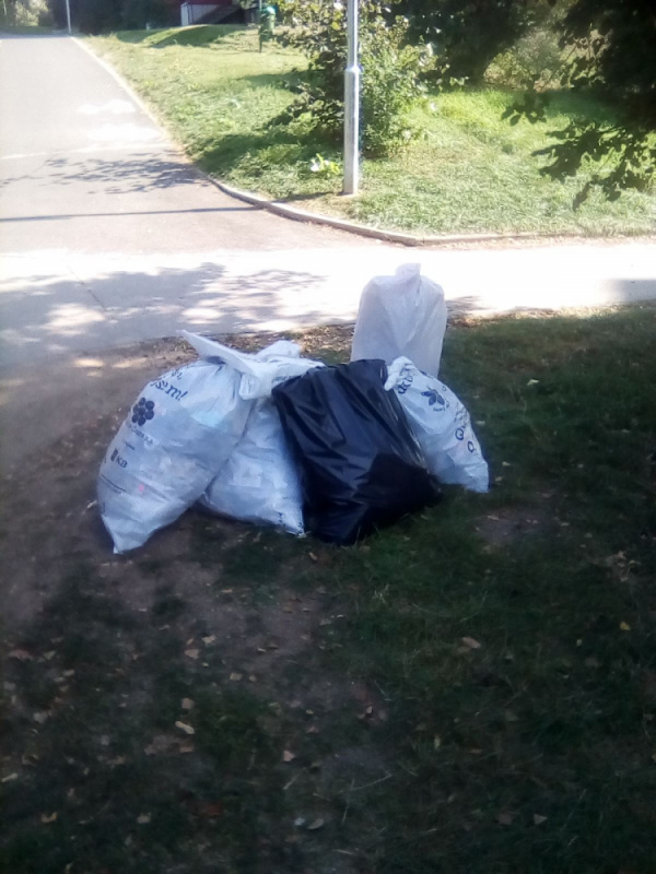 Svoz pytlů po úklidové akci .