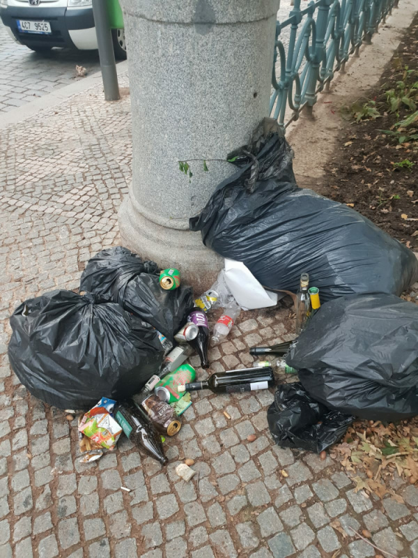 pytle s nepořádkem při vstupu na Kostnicke nám.