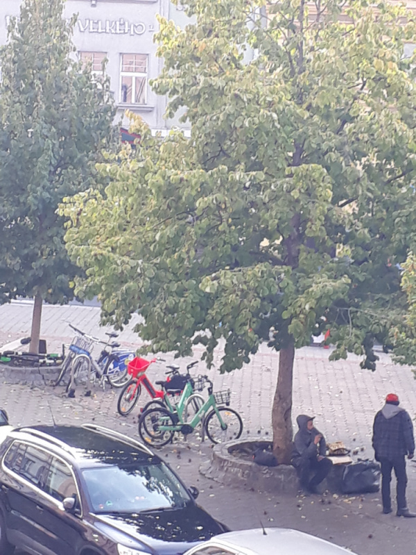 Místo okolo stromu ,obsazené bezdomovci. Nepořádek v prostoru Prokopova náměstí. Děkujeme moc za likvidaci "lavičky "z květináčů. bohužel si však bezdomovci vytvořili ležení o pár metrů dále na náměstí, kde popíjejí a válejí se, spí tam, odhazují odpadky odpadky, místo zapáchá.