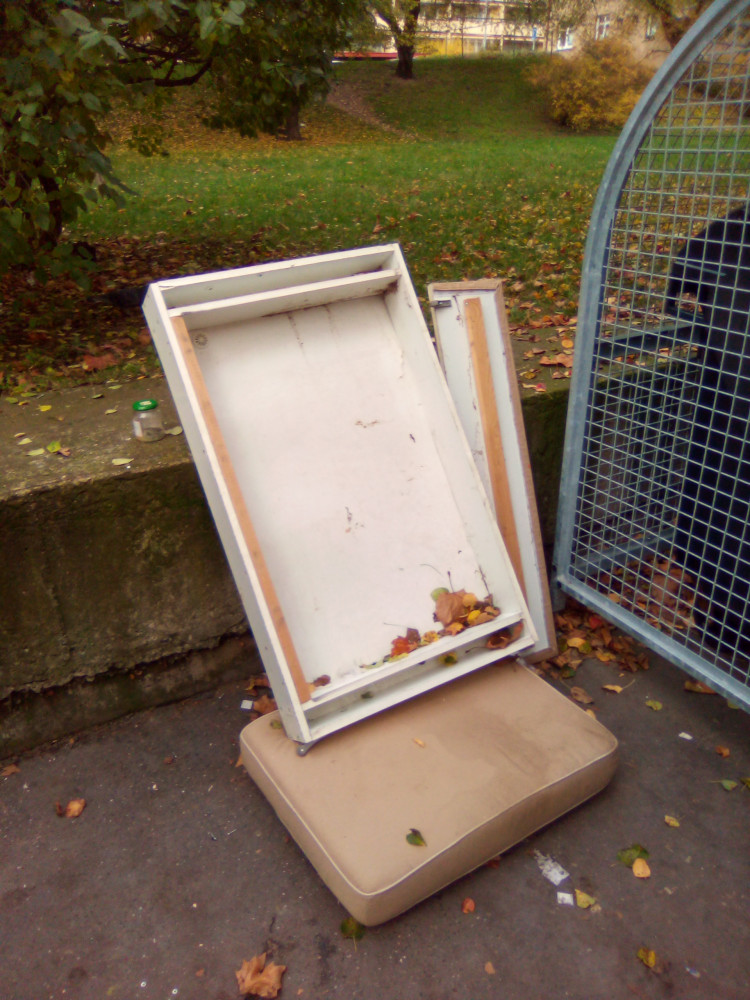 Postel u popelnic.