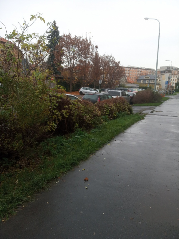 Keře obrostlé plevelem. Již hlášeno, ale bez výsledku. Plevel keře pravděpodobně zadusí. Potřebují také ostříhat.