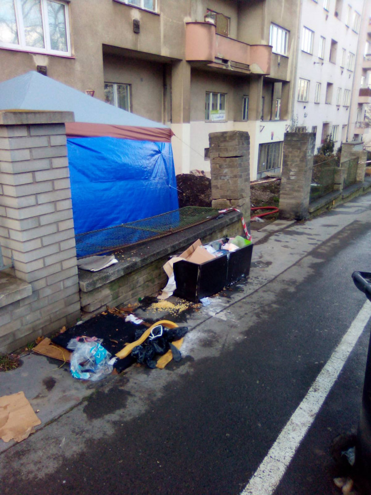 Odpad, skládka na chodníku