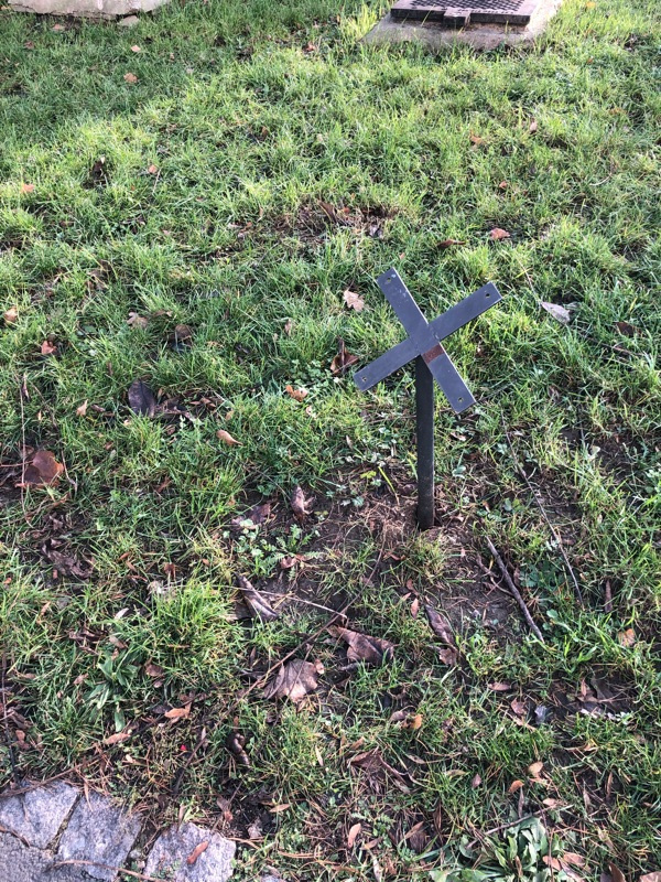 Železná konstrukce (bývalé označení zákazu psů) ohrožuje malé cyklisty. V nedávné době jsem byl svědkem kdy maly cyklista si nevšiml tuto konstrukci a narazil do ní - naštěstí se nic nestalo. Prosim o řešení - odstranění a případně instalacia nového označení. V nedávné době se na ulici instalovali nové označení.