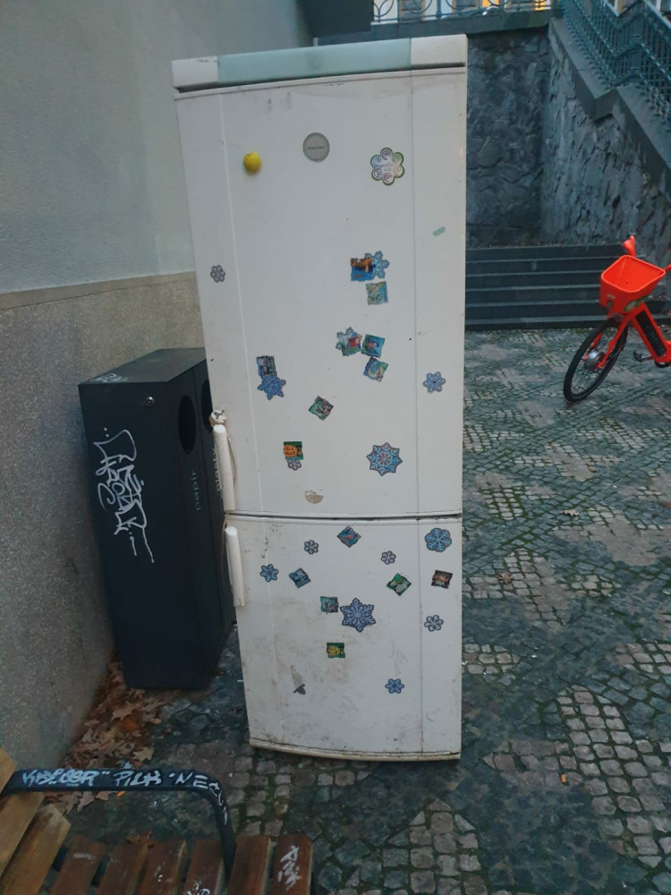 Dobrý den, děkujeme za Váš podnět. Svezeme jakmile to bude možné. Dostat se k lednici nejde, parkování špatné a parkující auta... Pavel, Čistá Trojka