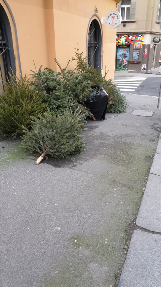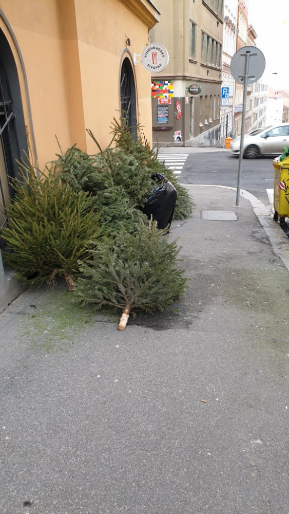 děkujeme za Váš podnět. Stromečky u tříděných nádob jsou správně, Sveze firma AVE při pravidelném svozu.