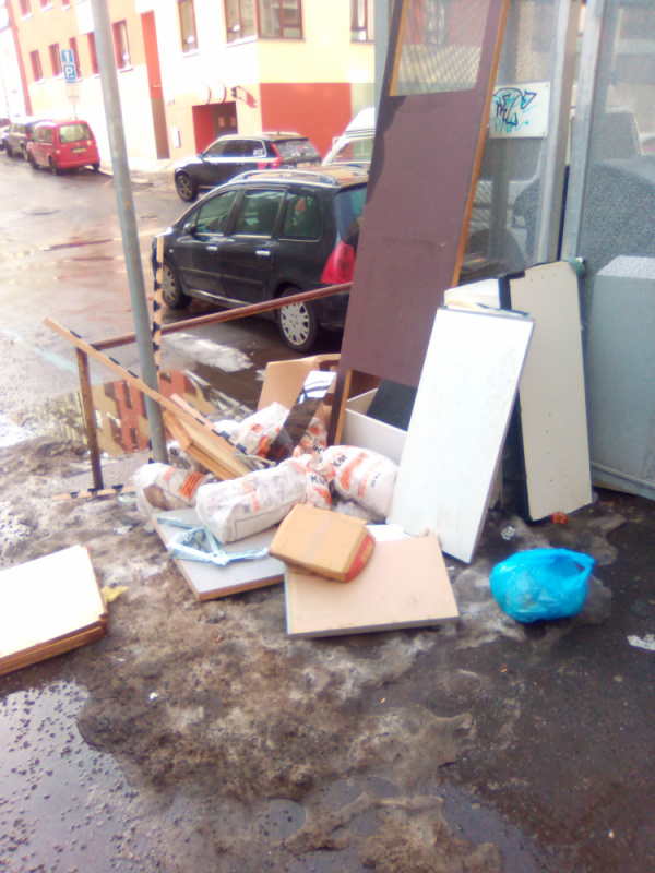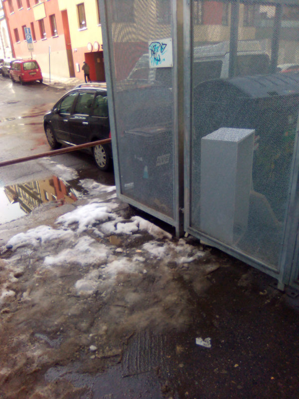 Nepořádek u klece na popelnice.