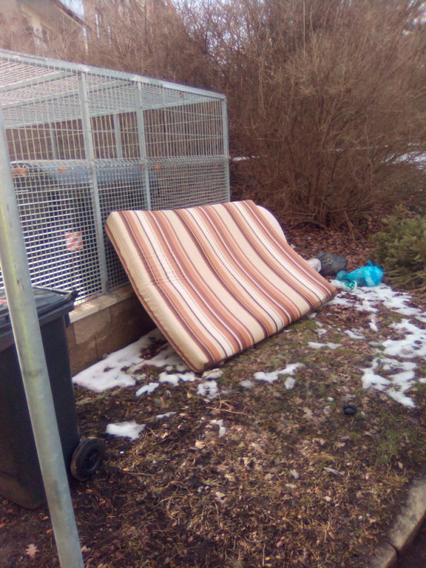 Nepořádek kolem klece na popelnice