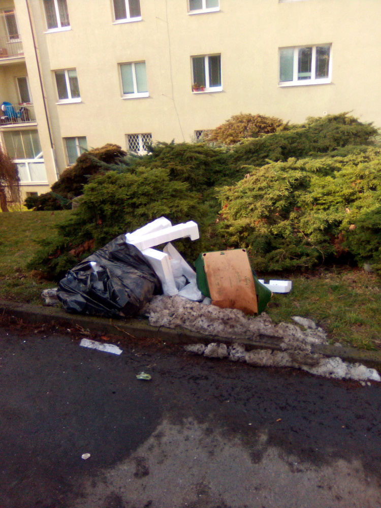 Nepořádek kolem popelnic.