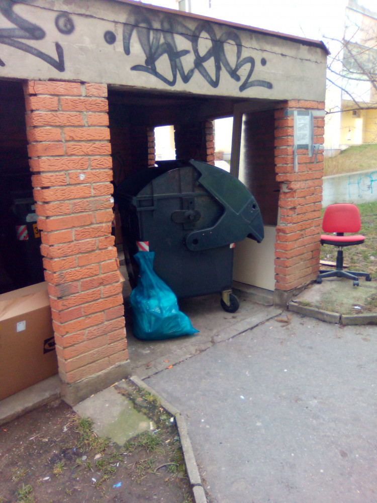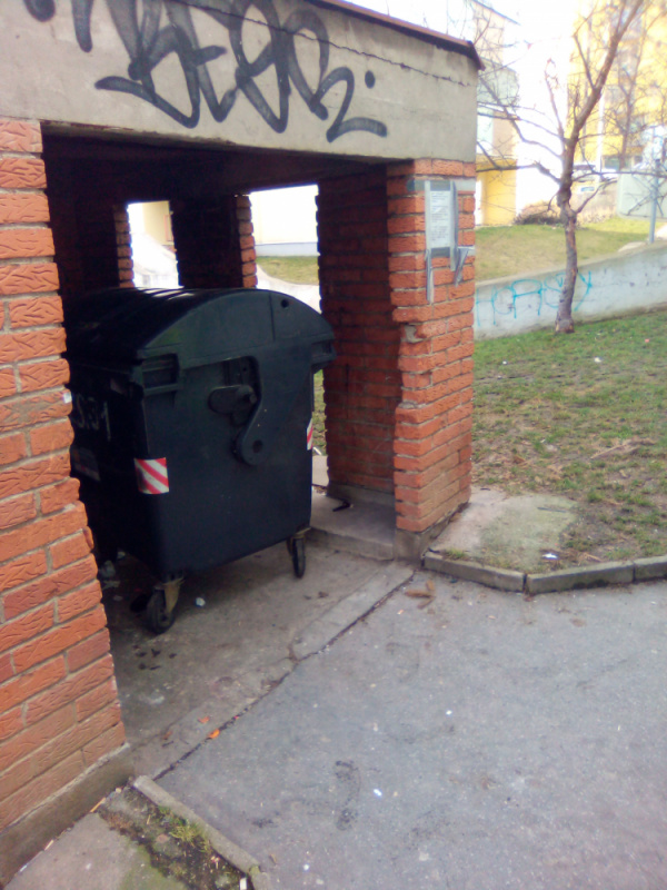 Nepořádek v domečku s popelnicemi.