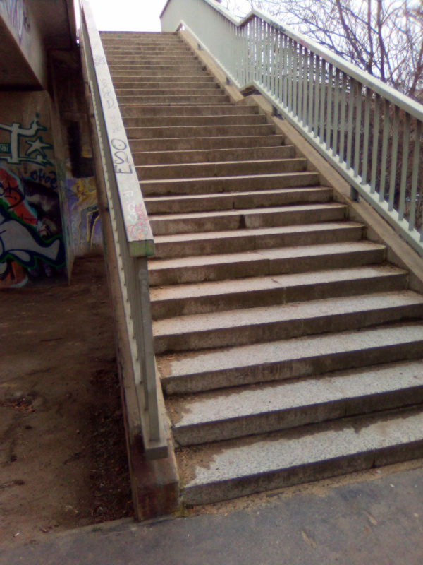 Nepořádek kolem schodiště z lávky pro pěší, směr zastávka autobusu Ohrada