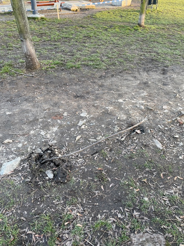 Nebezpečný železný prut při vstupu na psi hřiště zapuštěný v zemi