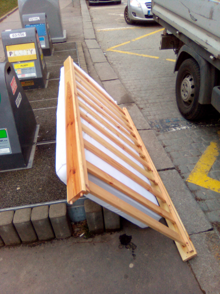 Dobrý den, děkujeme za Váš podnět, rám s matrací uklizen Čistou Trojkou.