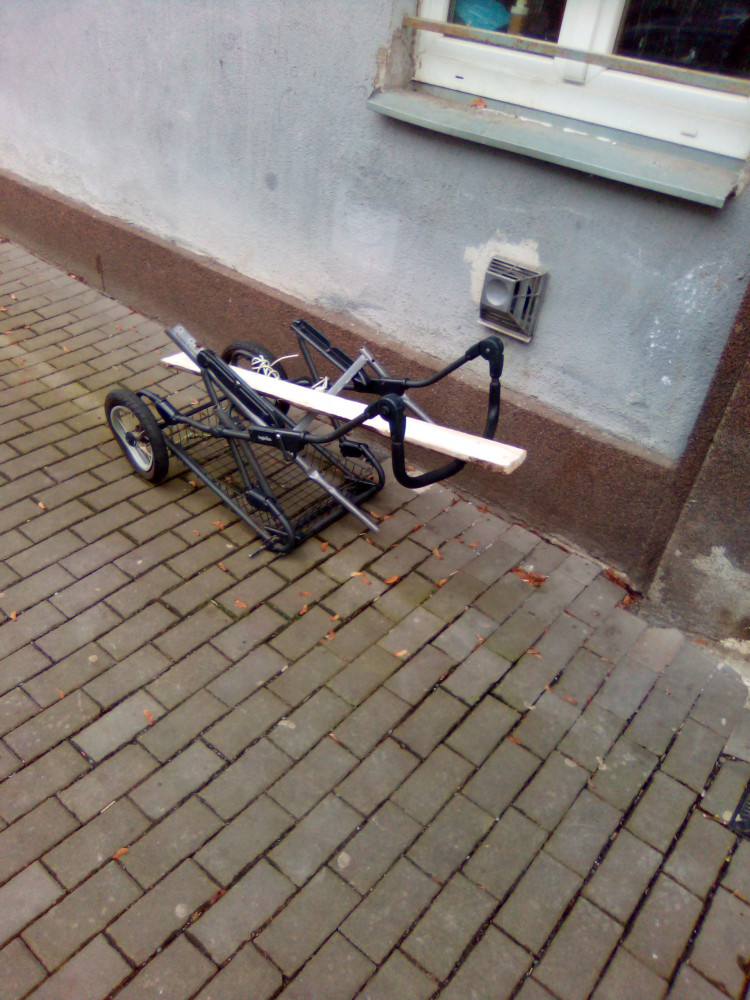 Kočárek na chodníku.