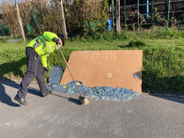 Rozbite zrcadlo ve vozovce.