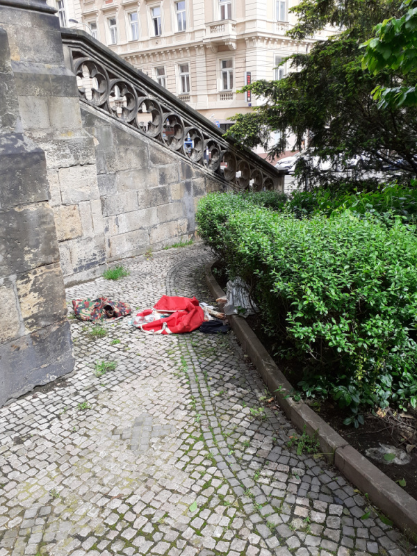 Dobrý den, prosím o úklid skládky po bezdomovcích u kostela na Sladk. nám. Děkuji