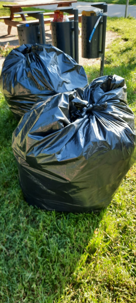 černé pytle s nepořádkem, které někdo zanechal u dolniho grilovaciho místa na Kříži