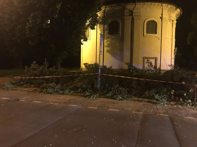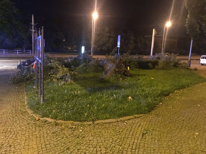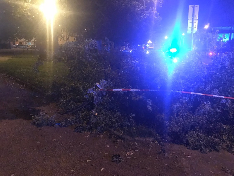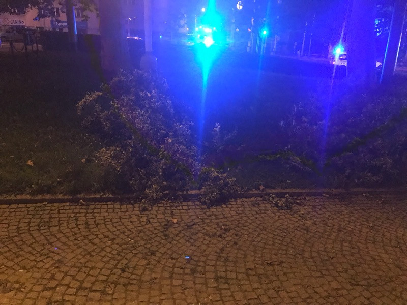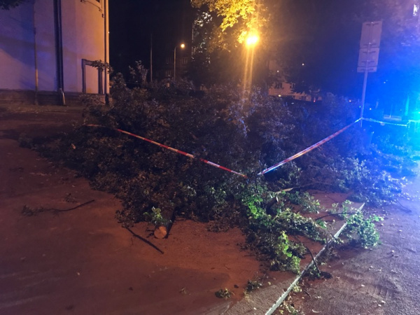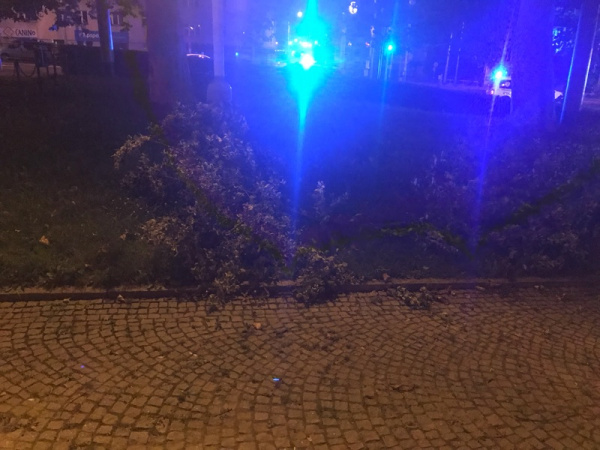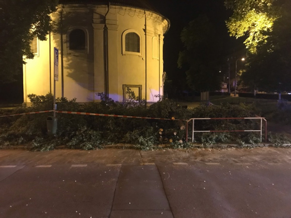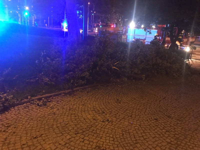 Spadlý strom a větve. Olšanská x Jičínská, Praha 3. Č.v.o. 301096