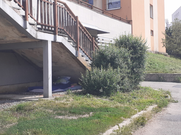 prosím o úklid pelechu po bezdomovcích v ulici Květinková.