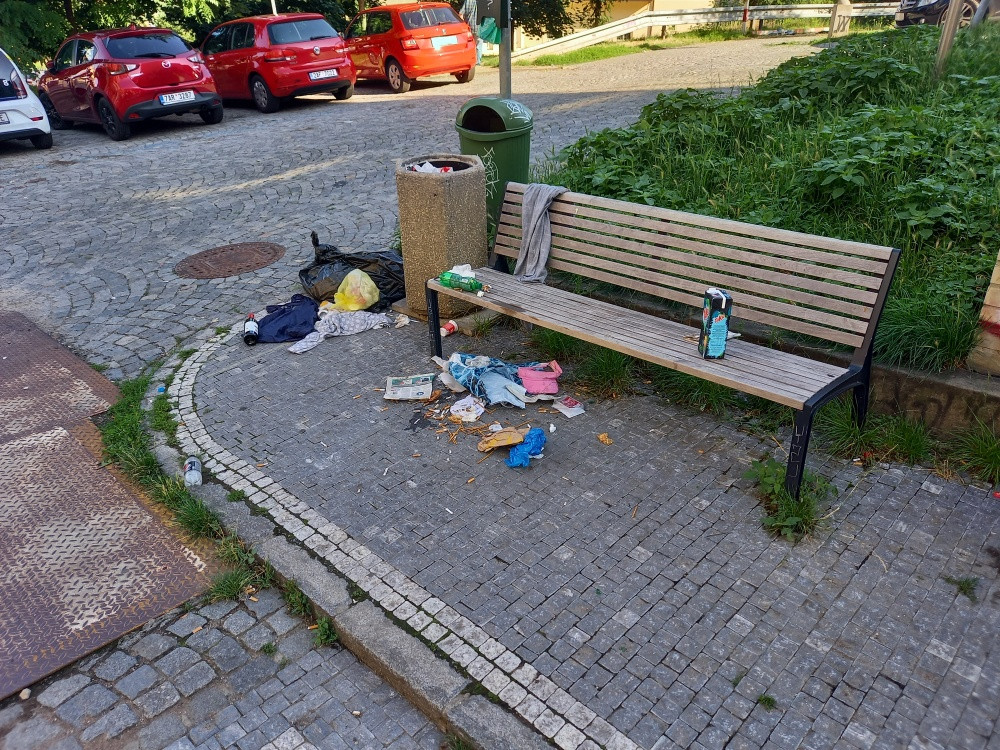 Dobrý den. Děkujeme za Váš podnět. Nepořádek poklizen. S pozdravem Čistá Trojka